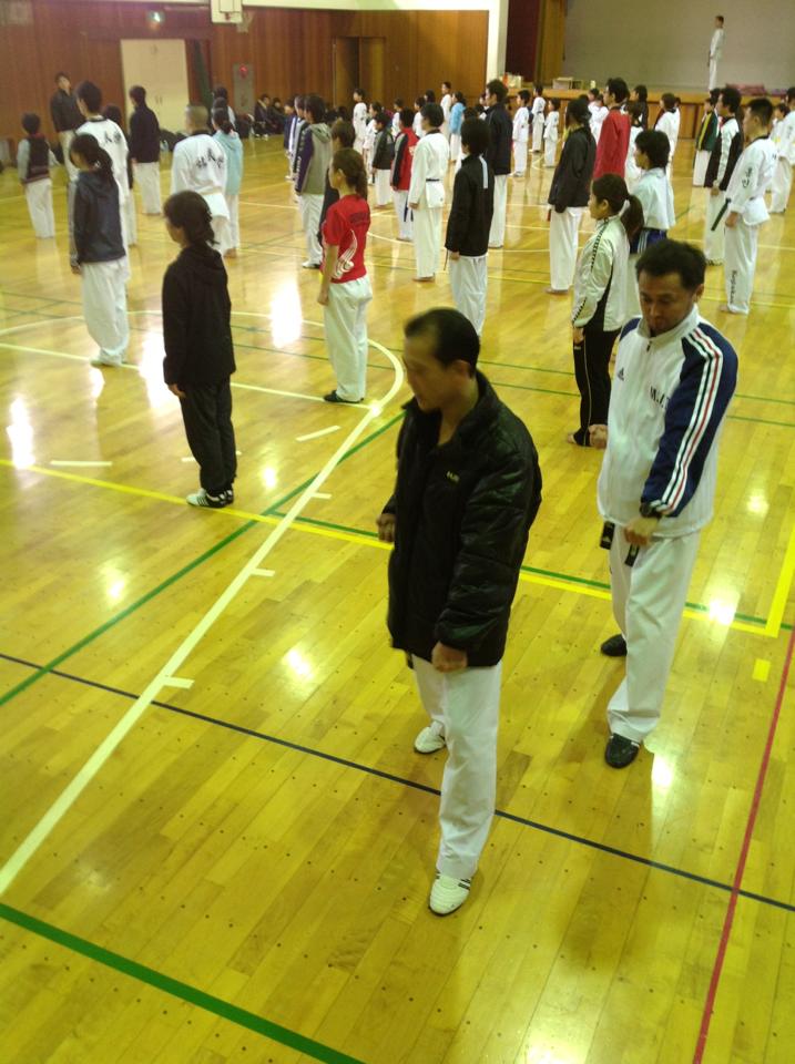 午前中前半は高橋先生の号令でライン練習、基本蹴りを多めに練習。