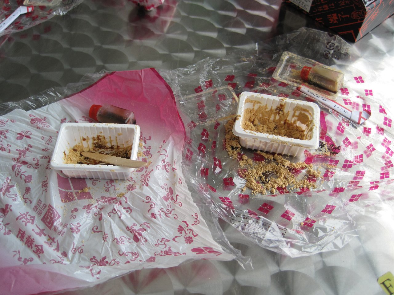 それでも飽きたらず、次は桔梗信玄餅と金精軒の元祖信玄餅の食べ比べ